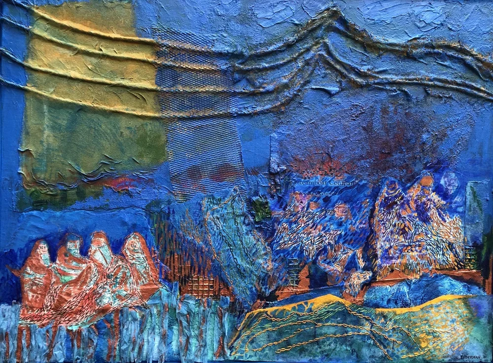 Refugees dreams. Fiber mixed media on canvas
