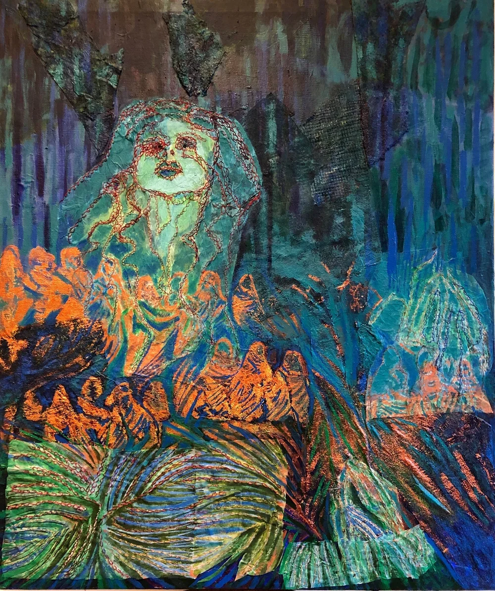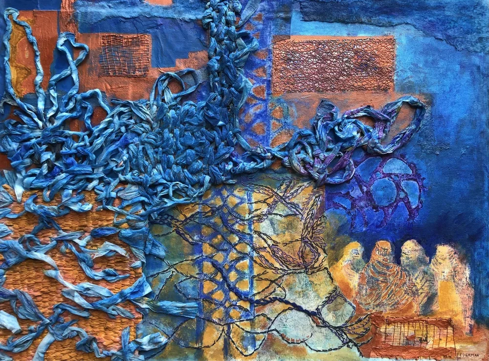 Embodiment. Fiber mixed media on canva